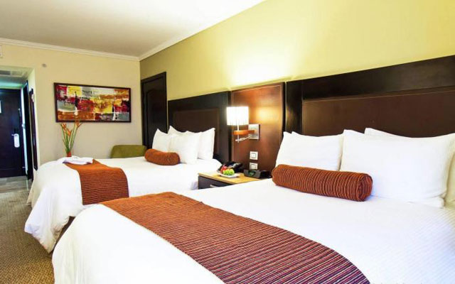 El Hotel cuenta con 352 habitaciones distribuidas de la siguiente manera: 206 sencillas, 134 dobles, 9 junior suites y 3 suites equipadas, con agua caliente, secador, aire acondicionado, servicio a la habitación, wifi, televisión por cable, habitaciones comunicantes y recepción las 24 horas.